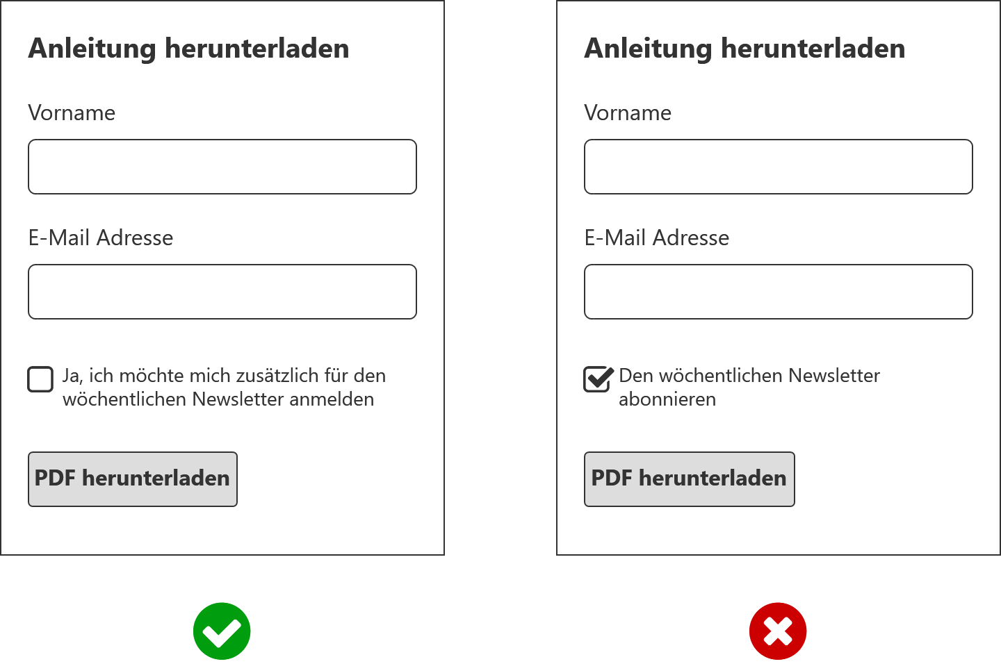 2. Verwenden Sie in Ihren Einwilligungsformularen keine vorab angekreuzten Kontrollkästchen