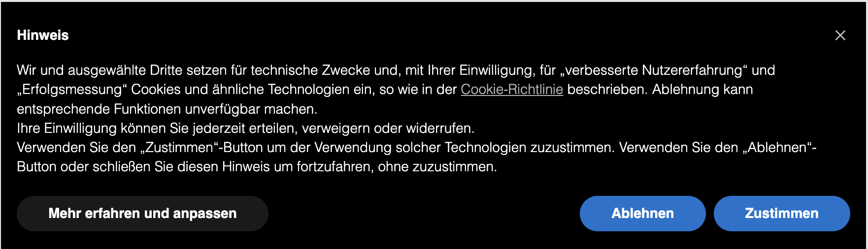 👉 Bieten Sie den Nutzern beim ersten Besuch Ihrer Website eine Ablehnen-Button an.