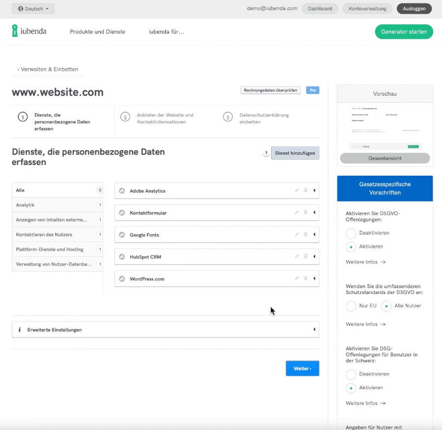 Mit iubenda können Sie diese neuen gesetzlichen Anforderungen erfüllen.