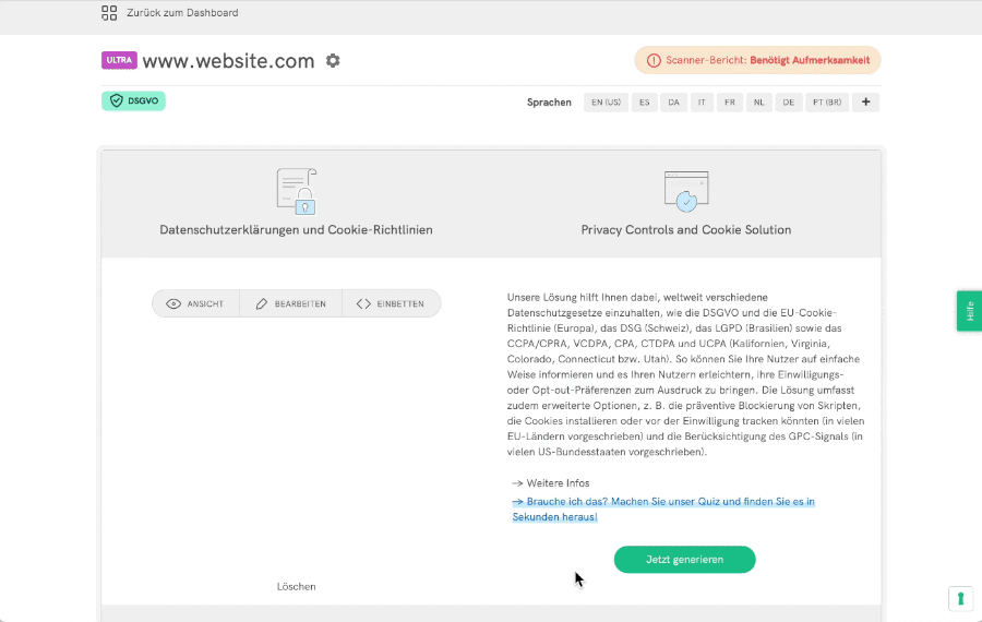 Mit unserem Generator für Datenschutz- und Cookie-Richtlinien können Sie jetzt eine Compliance-Lösung für das DSG aktivieren.