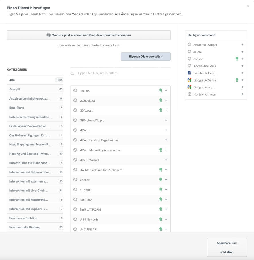 💡 Wir haben einen Website-Scanner in das Dienste-Fenster des Generators eingefügt, mit dem Sie Ihre Website schnell und in Echtzeit überprüfen und feststellen können, welche Dienste Sie zu Ihrer Richtlinie hinzufügen müssen.