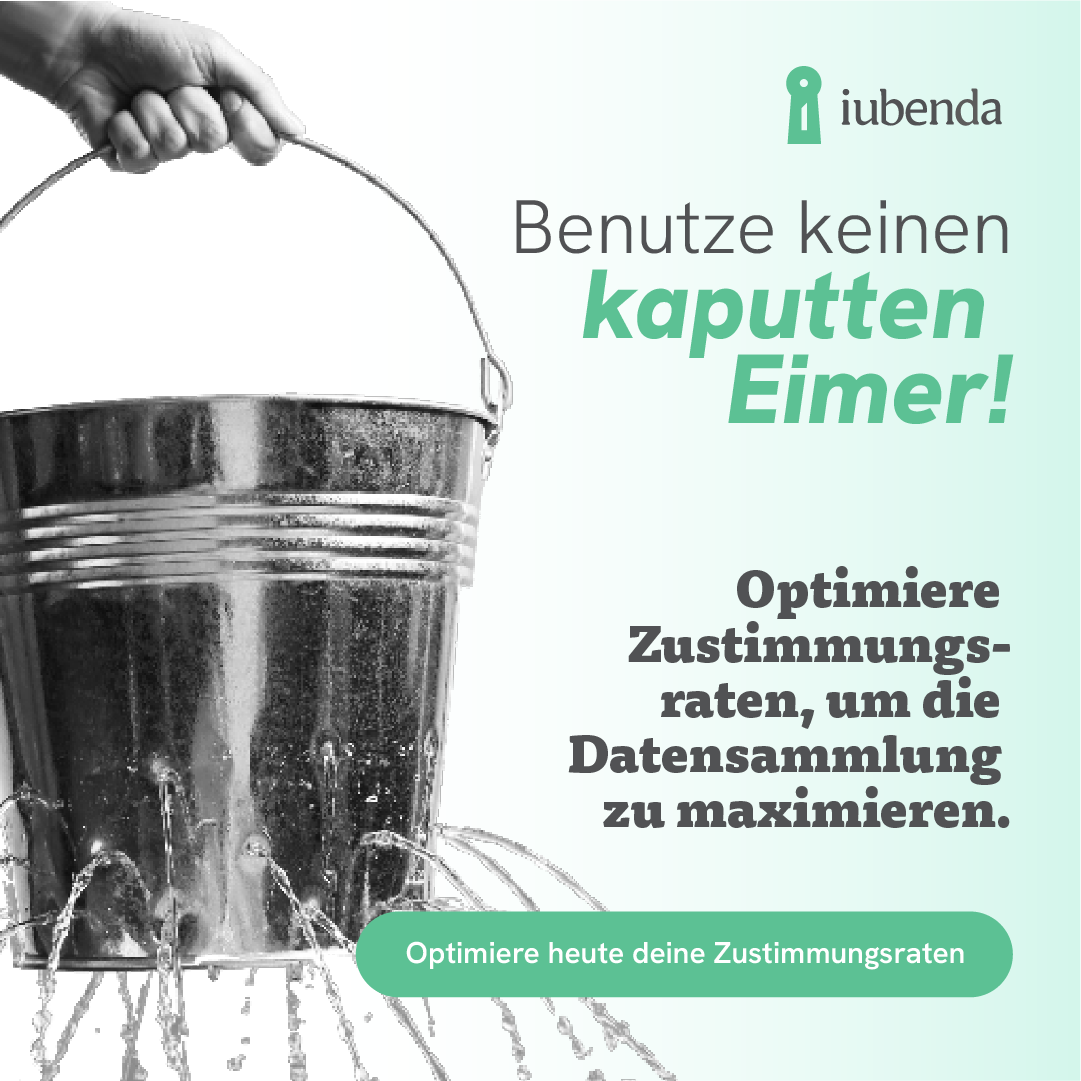 👋 Müssen Sie Ihre Website mit den Online-Gesetzen in Einklang bringen? Unser kompetenter Partner iubenda bietet benutzerfreundliche Softwarelösungen zur Erstellung von Datenschutzerklärungen, Einwilligungs-Bannern und mehr.🚀 Mit meinem Affiliate-Link[fügen Sie hier Ihren Affiliate-Link ein] erhalten Sie 10 % Rabatt auf ihren Kauf! Bei Fragen können Sie mich auch gerne kontaktieren.