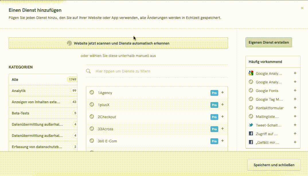 Darüber hinaus erkennt unsere Lösung jedes Cookie/jeden Tracker, das/der von unserem Website-Scanner gefunden wird und nicht mit einem Dienst in Ihrer Datenschutzerklärung verknüpft ist. Diese Cookies werden in den Einstellungen für die Cookie-Richtlinie angezeigt, mit der Option, sie in Ihren Dokumenten hinzuzufügen.
