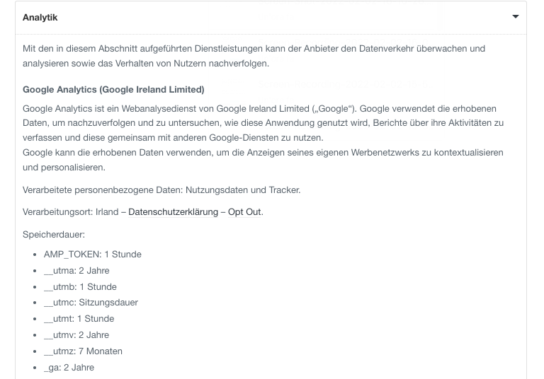 Das Ergebnis? Ihre Cookie-Richtlinie von iubenda zeigt die Lebensdauer der verschiedenen Cookies an, die mit den von Ihrer Website/App genutzten Diensten verbunden sind.
