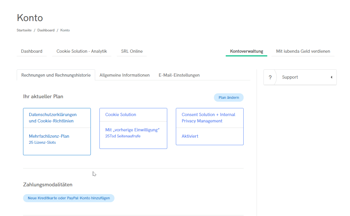 - Klicken Sie auf den Button „Neue Kreditkarte oder PayPal-Konto hinzufügen“.