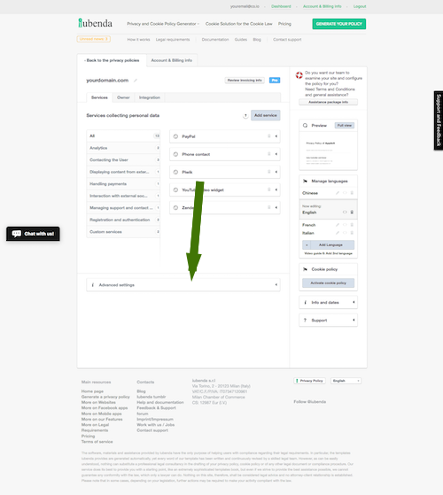 Sie können die Art und Weise, wie Ihr Projekt/Webseite/App etc. in Ihrer Datenschutzerklärung erwähnt wird, individuell anpassen. Die Grundeinstellung ist “diese Applikation”.