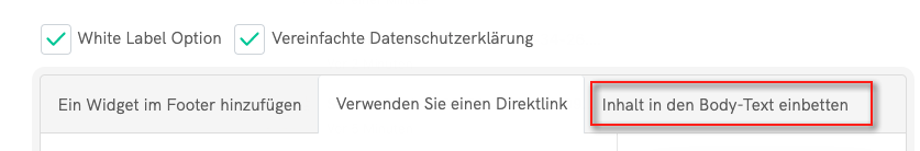 Wenn Sie den Code direkt kopieren, wird das iubenda-Styling (Schriftarten usw.) weiterhin auf Ihr Dokument angewendet. Wenn Sie möchten, dass das Dokument das Styling direkt von Ihrer Website übernimmt, wählen Sie hier die White-Label-Option.