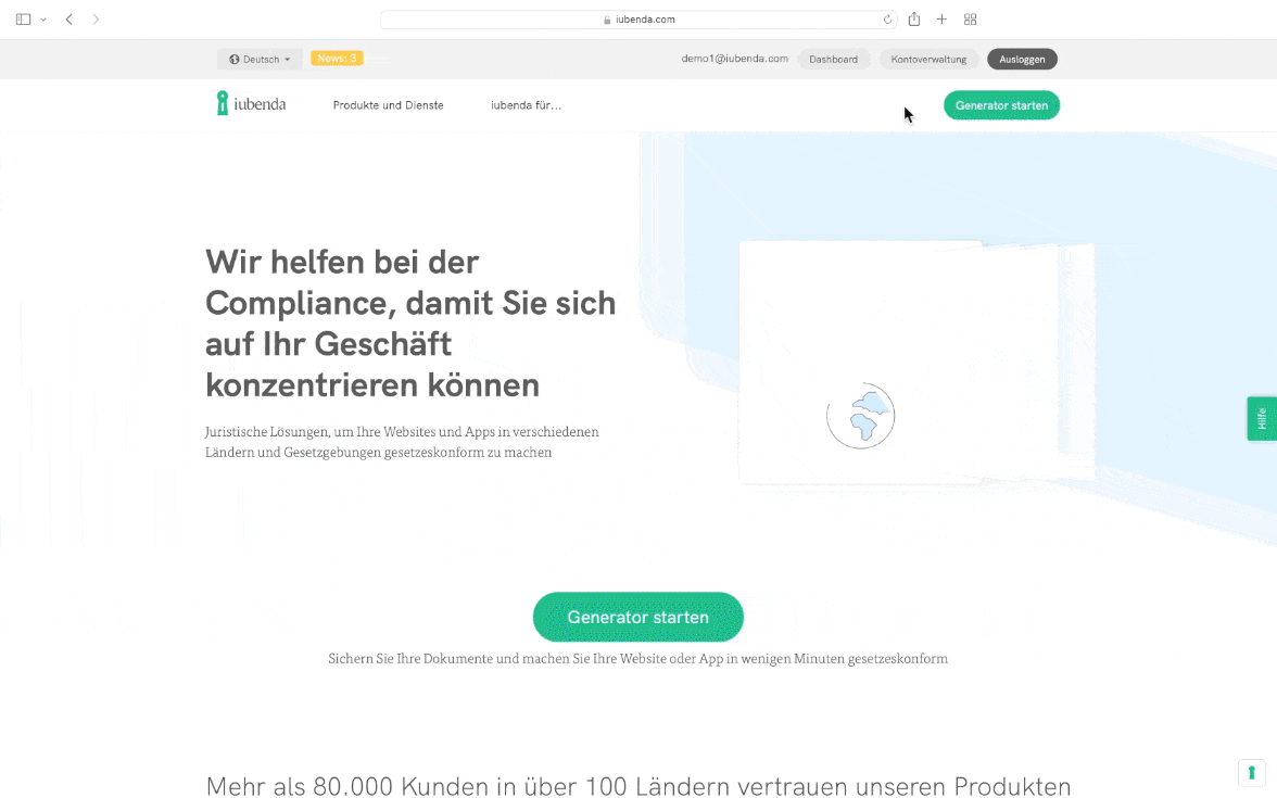 1. Loggen Sie sich zunächst in Ihr iubenda-Konto ein unter iubenda.com