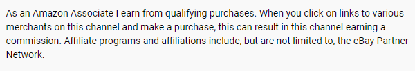 Here’s an example of an Amazon affiliate disclosure, taken from a YouTube video: