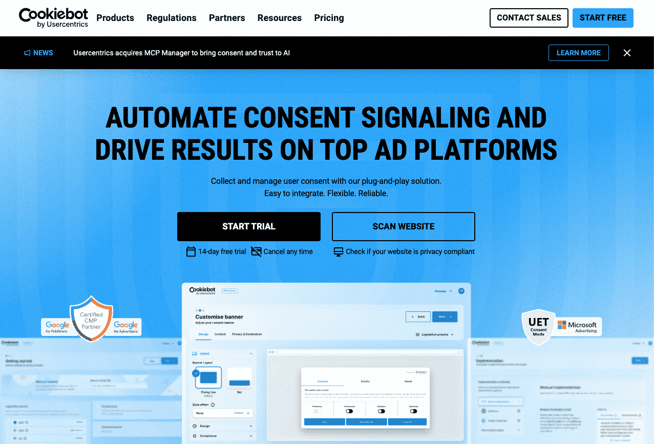 - Google-certified CMP compatible with Google Consent Mode v2, helping recover marketing insights through data modeling