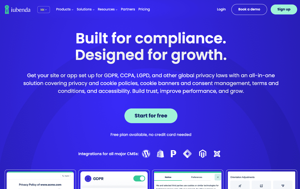 iubenda is a digital compliance suite, meaning a single subscription can cover GDPR cookie consent, legal policies, accessibility, data subject requests, and more. While built for compliance, the platform is designed to help your business grow too, with consent recovery features and other solutions to help you get the data and insights you need.