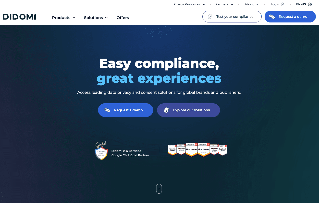Didomi is a French CMP that combines compliance with real-time data tools. It focuses on helping businesses improve the consent experience while maintaining visibility over user choices and performance.