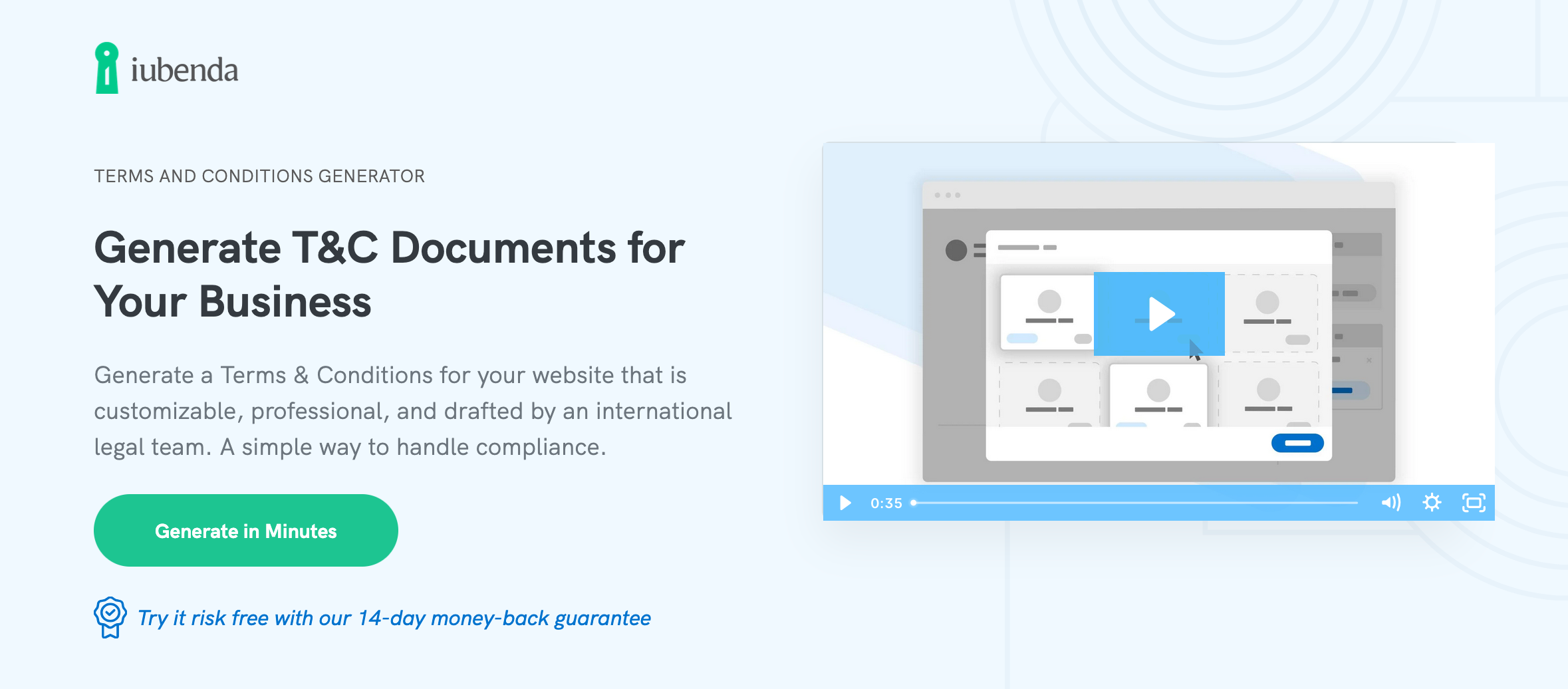 At iubenda, we also have a money-back guarantee in our Terms and Conditions document. It allows our customers to receive a full refund within 14 days of their purchase, no questions asked.