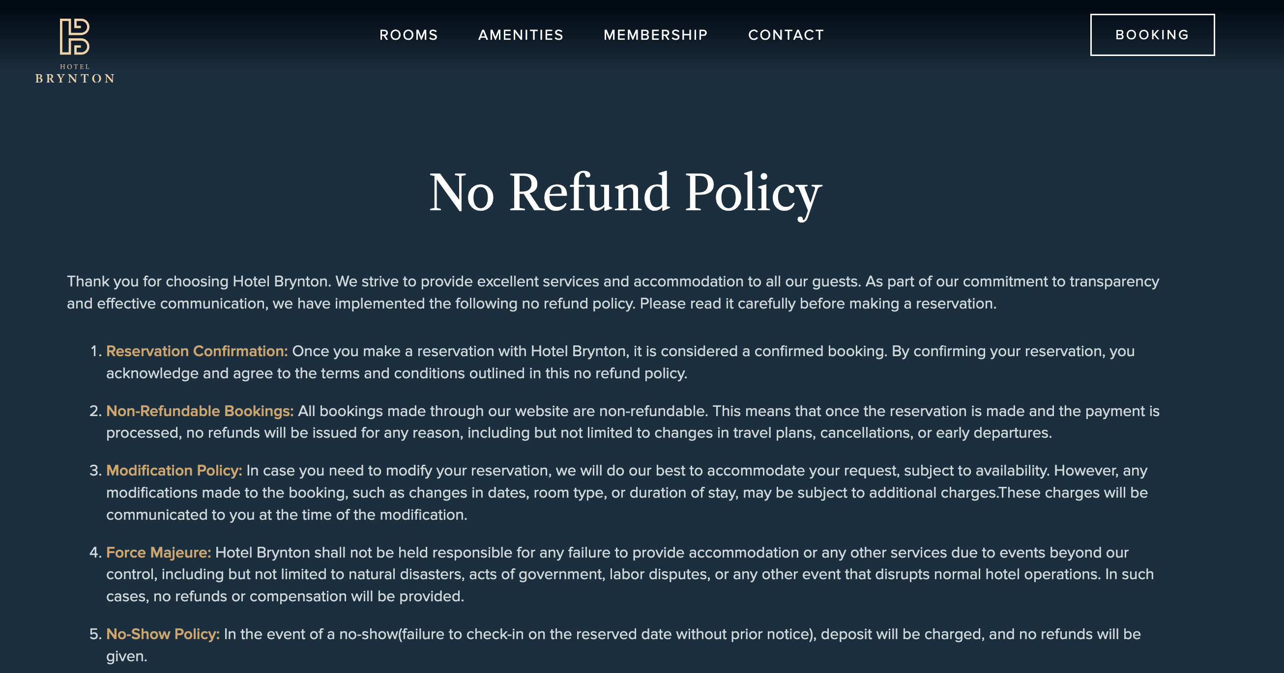 Another common example of a no-refund policy can be found in hotel bookings. Often, hotels don’t allow their guests to get a refund after they have booked a room, so they charge the whole amount.