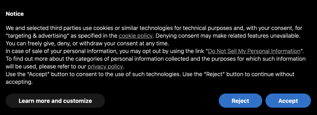 Instead of giving a simple yes or no option, companies use every trick in the book to manipulate users. We have identified more than fifteen common abuses. The most common issue is that there is simply no ‘reject’ button on the initial page.
