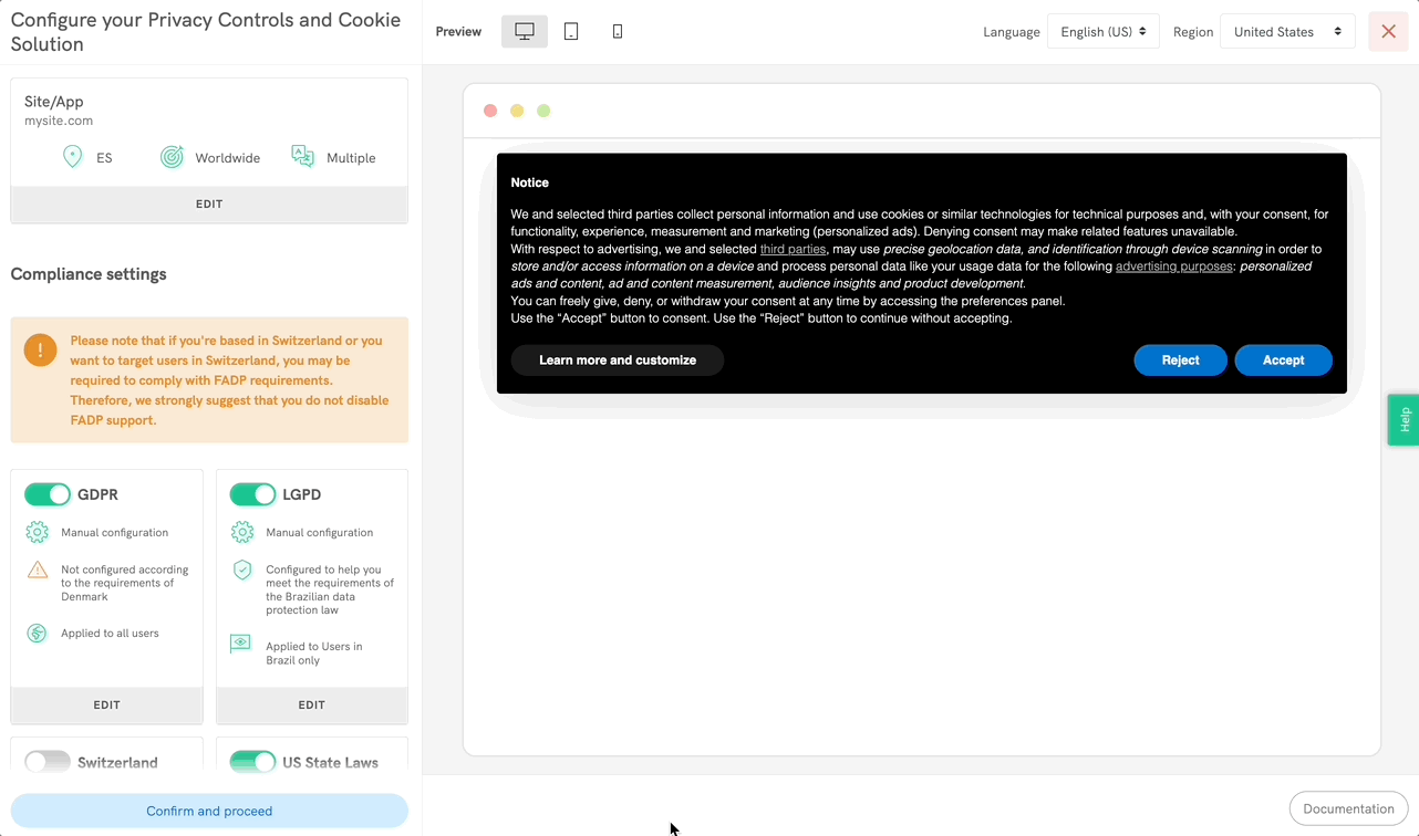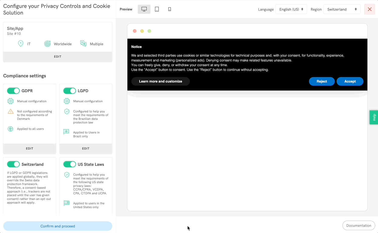 - Next, go to the Privacy Controls and Cookie Solution configurator.