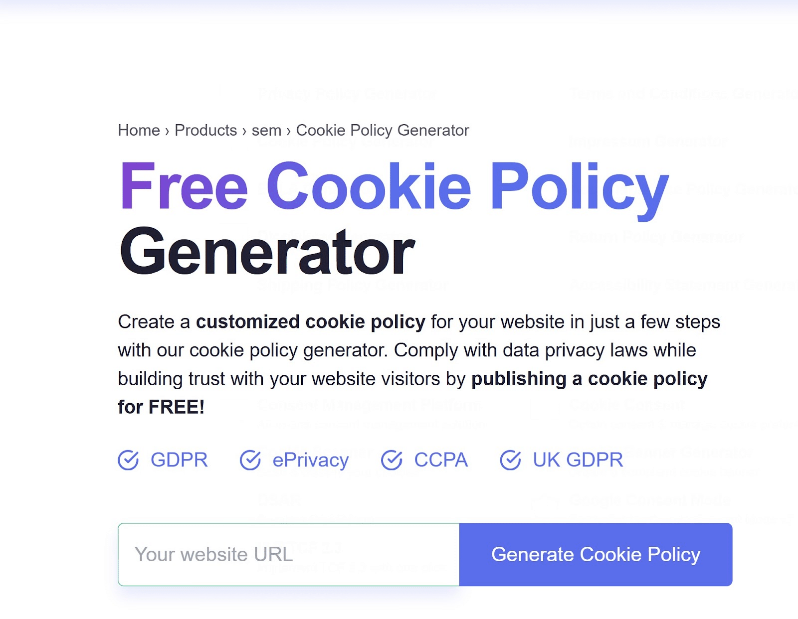 Privacy regulations like GDPR, the ePrivacy Directive, the California Consumer Privacy Act (CCPA), and others require websites to provide cookie policies in a clear and accessible way.