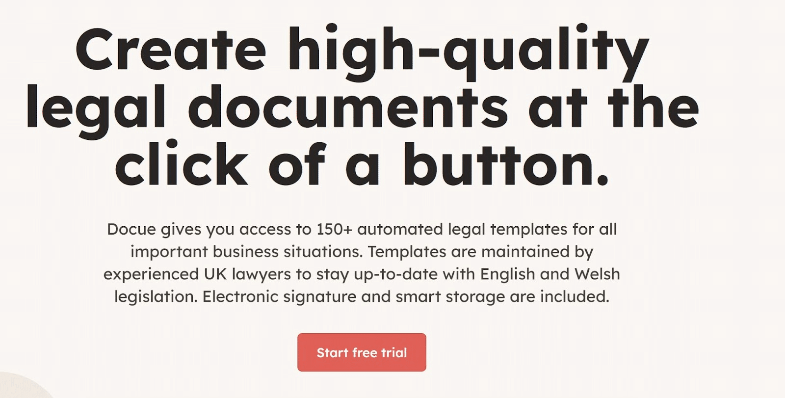Docue is a British legal document generation tool that helps businesses create and manage contracts and legal documents, including privacy-related policies.