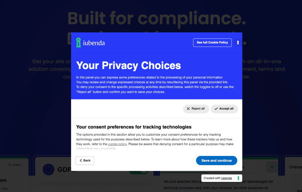 iubenda’s solutions are exactly for this situation: founders who want to do things properly without making compliance a second job.