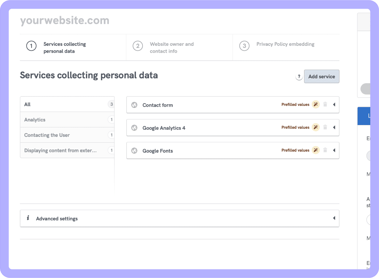 Consent banners built to FADP standards. Let users opt out, handle sensitive data, and integrate with Google Consent Mode + IAB TCF.