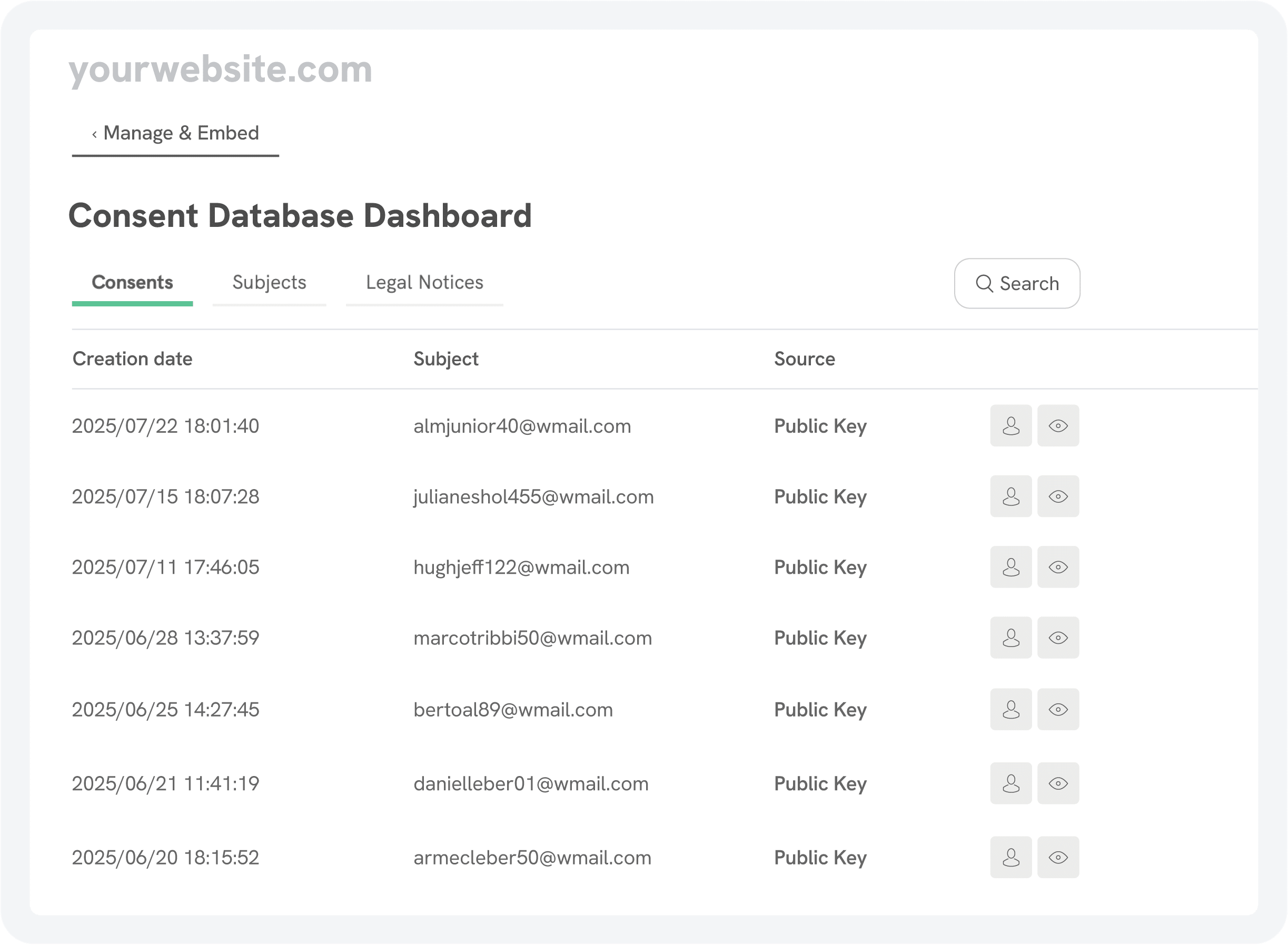 Every opt-in, every opt-out, is logged with timestamps, user IDs, and policy versions.