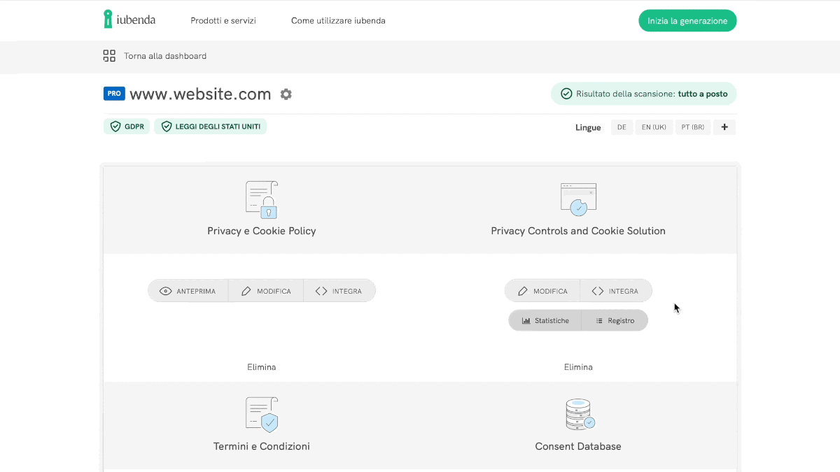 More than just cookie banners, iubenda offers a full suite of online tools, all managed from one convenient dashboard. Our 360° solutions help meet the requirements of international privacy laws in Europe and beyond.