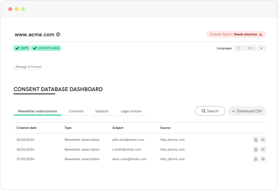 - Review consent records with a user-friendly dashboard