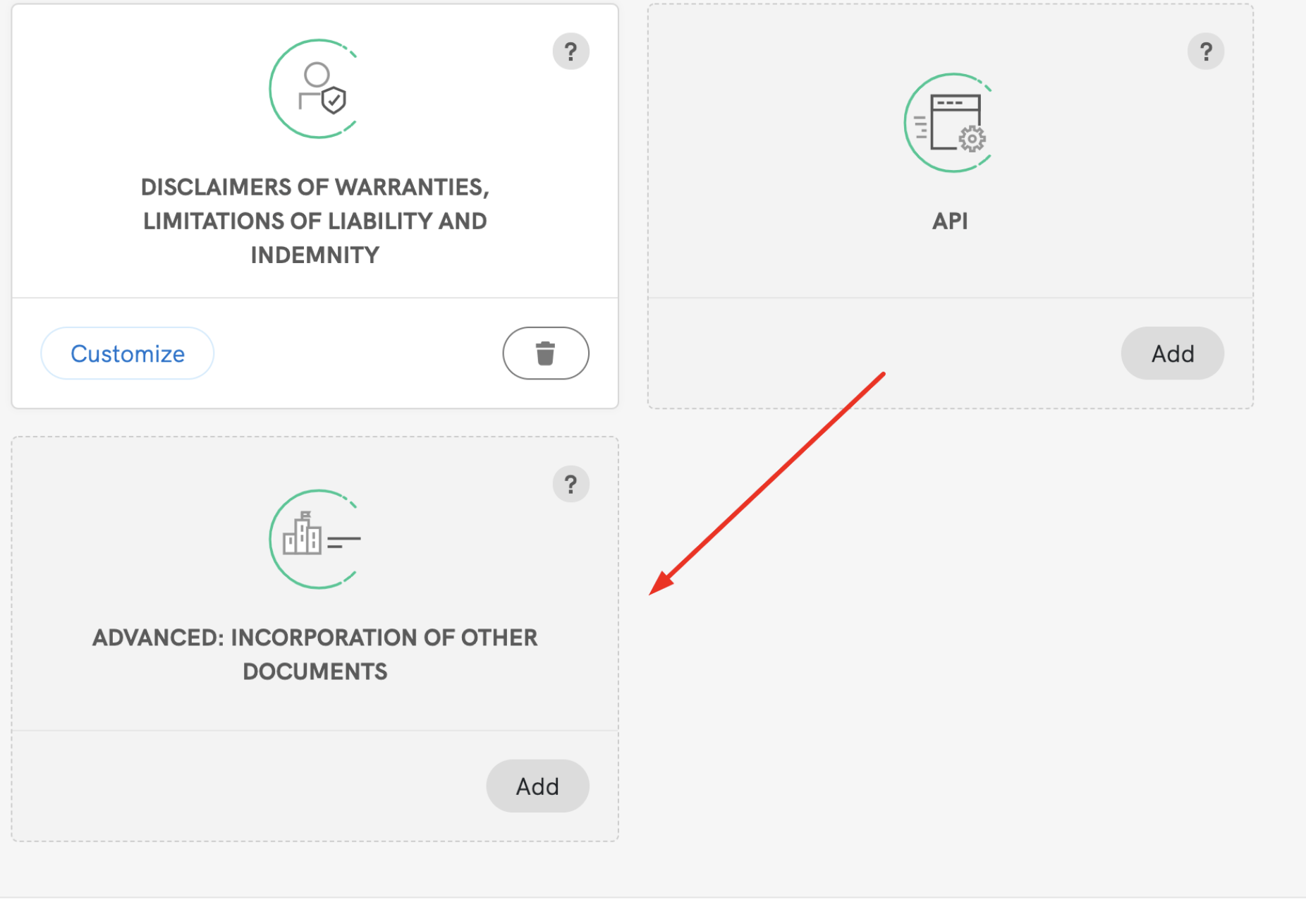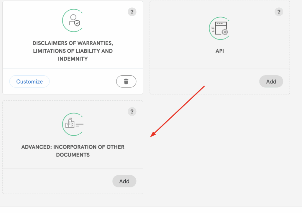 - Navigate to the relevant section in the Terms and Conditions editor and click on ‘Add clauses’