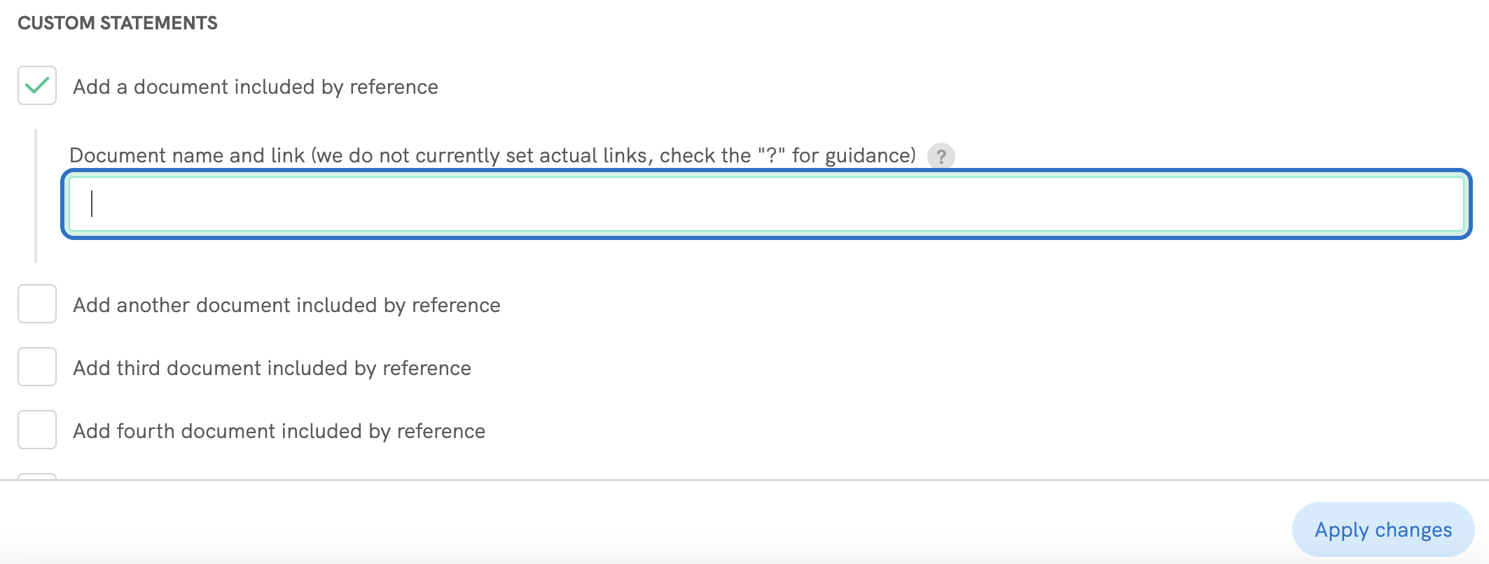 - After that click on ‘Add’ under the Advanced: Incorporation of other Documents section