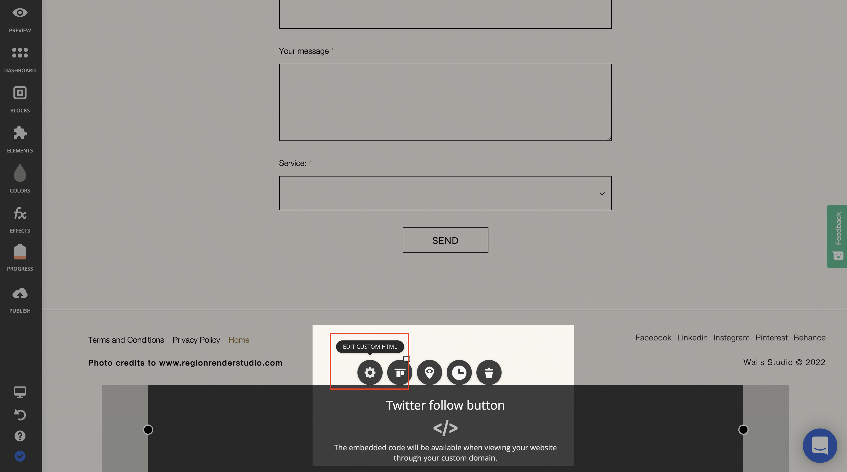 Then click on the EDIT CUSTOM HTML icon to open the code editor.