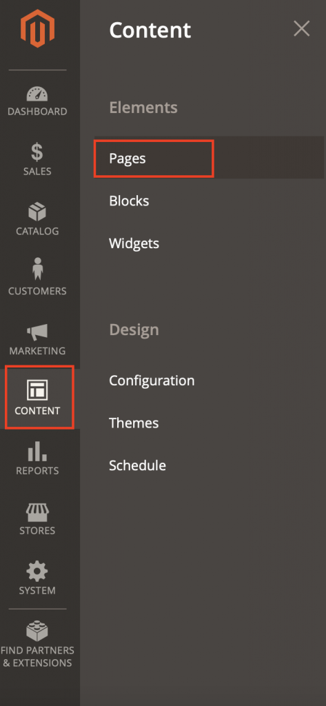 On the panel on the left, click on Content then Pages under the “Elements” section.