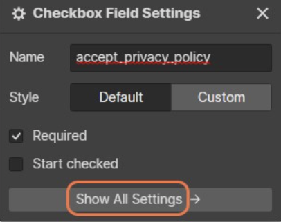 Now, type “Privacy_acceptance” to the “Name” setting text box provided.