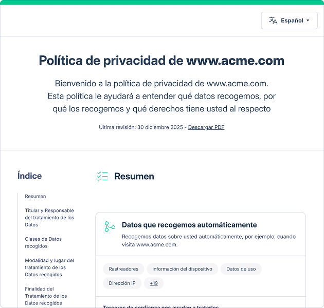 Cuando gestionas la privacidad, las cookies y los documentos jurídicos en sistemas separados, pueden aparecer deficiencias rápidamente.