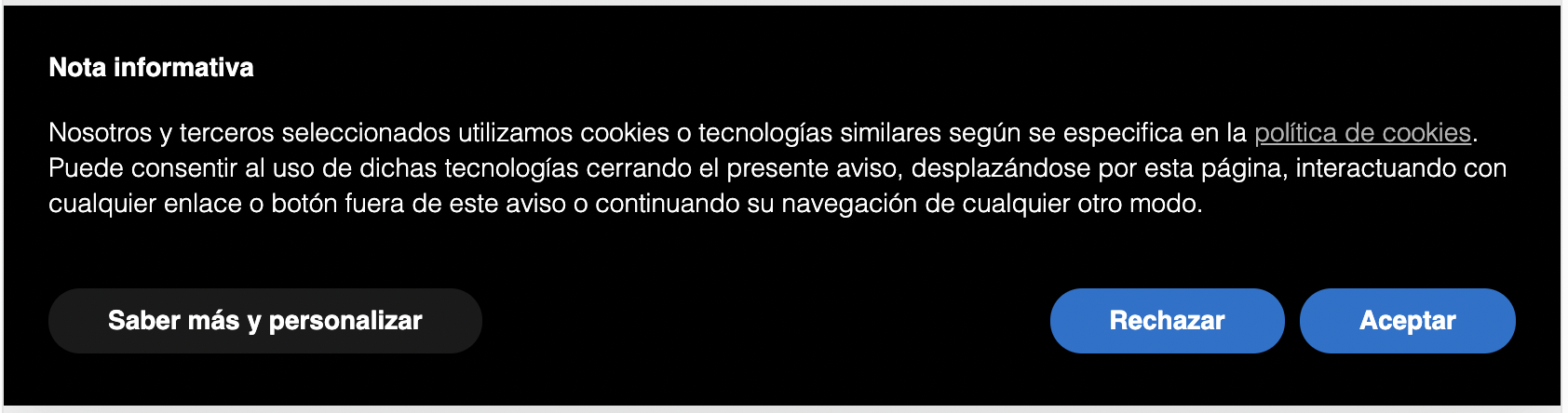 - incluir en el banner un enlace a una política de cookies más detallada;