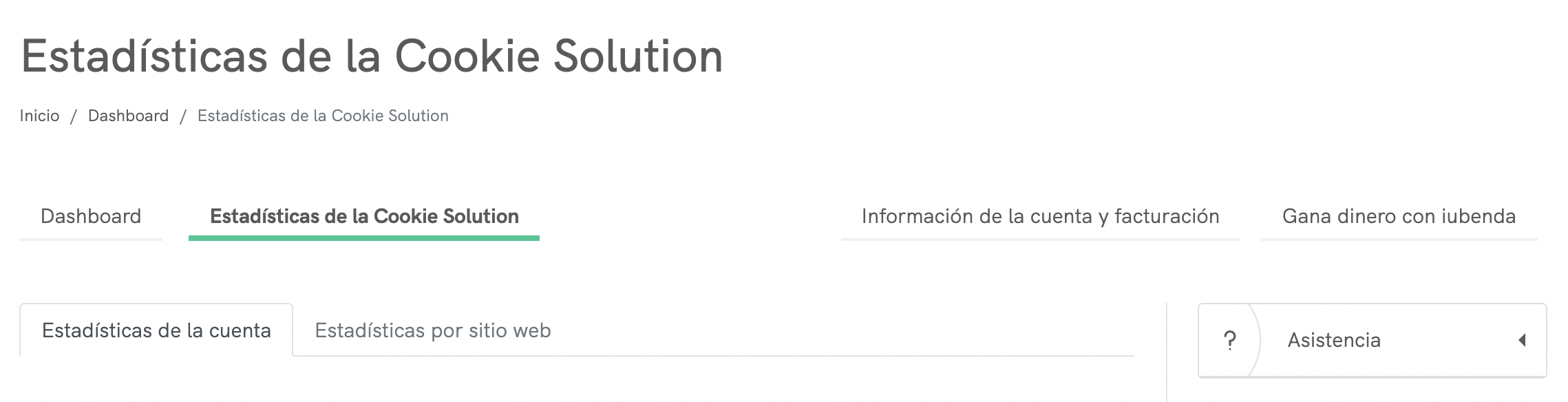 Puedes acceder a estas funciones en tu dashboard haciendo clic en la pestaña Estadísticas de Privacy Controls and Cookie Solution.
