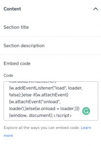 Luego, haz clic en la opción <> Embed code en la parte izquierda de la pantalla.