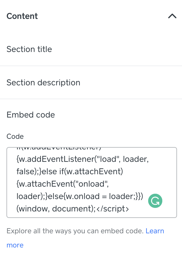 Luego, haz clic en la opción <> Embed code en la parte izquierda de la pantalla.