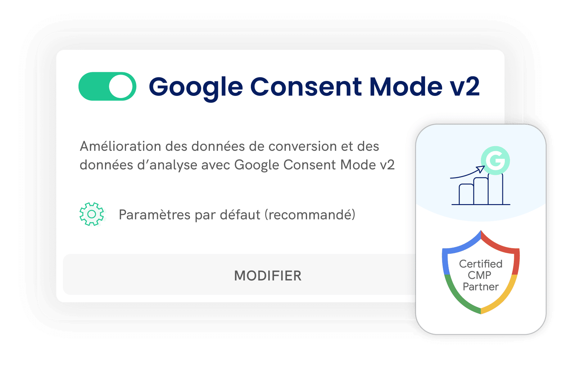 Entièrement compatible avec le Cadre de transparence et de consentement de l’IAB et Google Consent Mode.