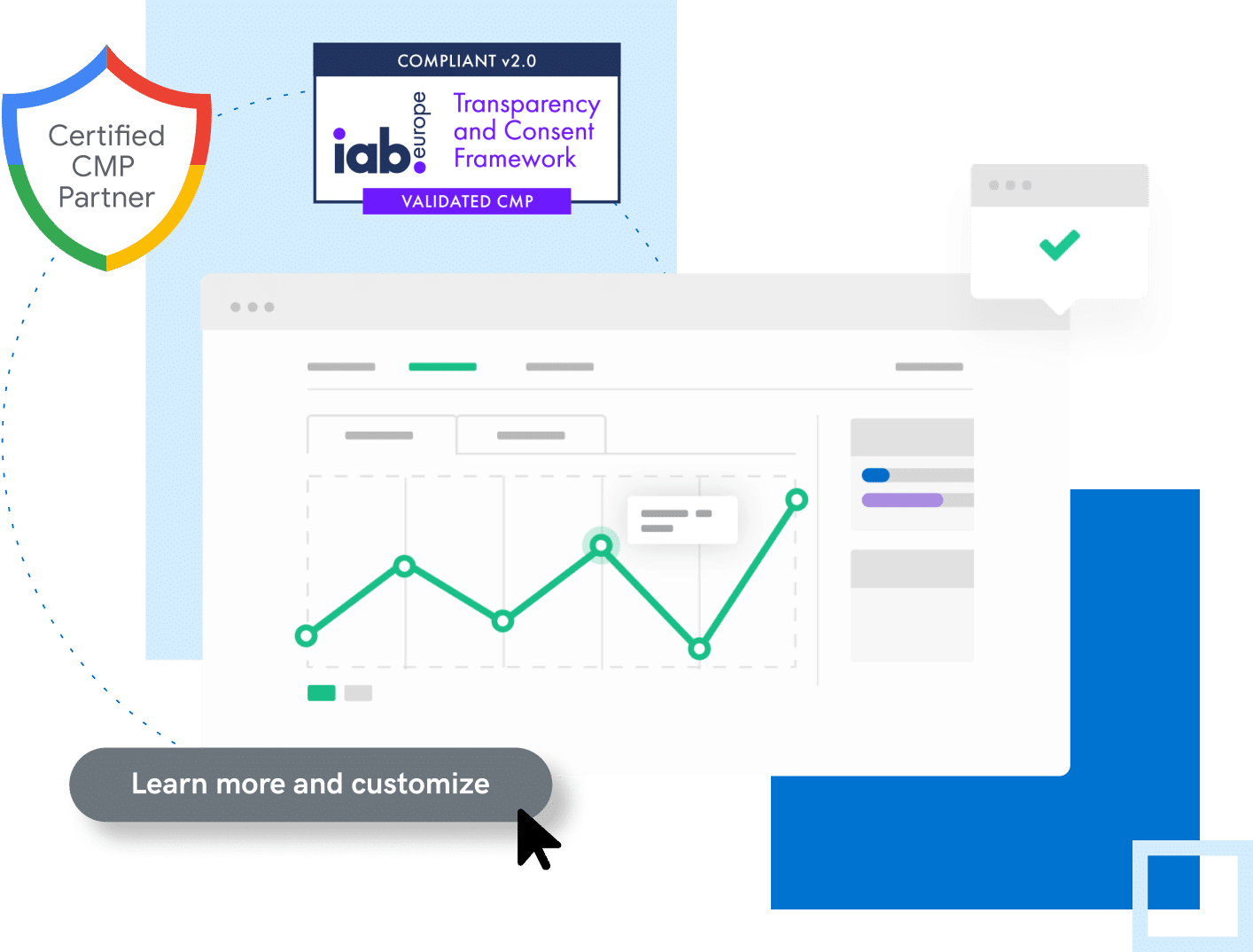 Solution ultrarapide : Si vous utilisez Google AdSense, Ad Manager ou AdMob, vous devez vous appuyer sur une CMP certifiée par Google et intégrée au Cadre de transparence et de consentement de l’IAB pour diffuser des annonces à vos utilisateurs. Nous prenons également en charge Google Consent Mode.