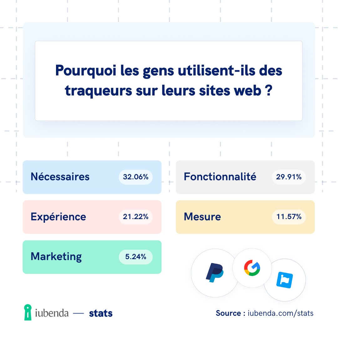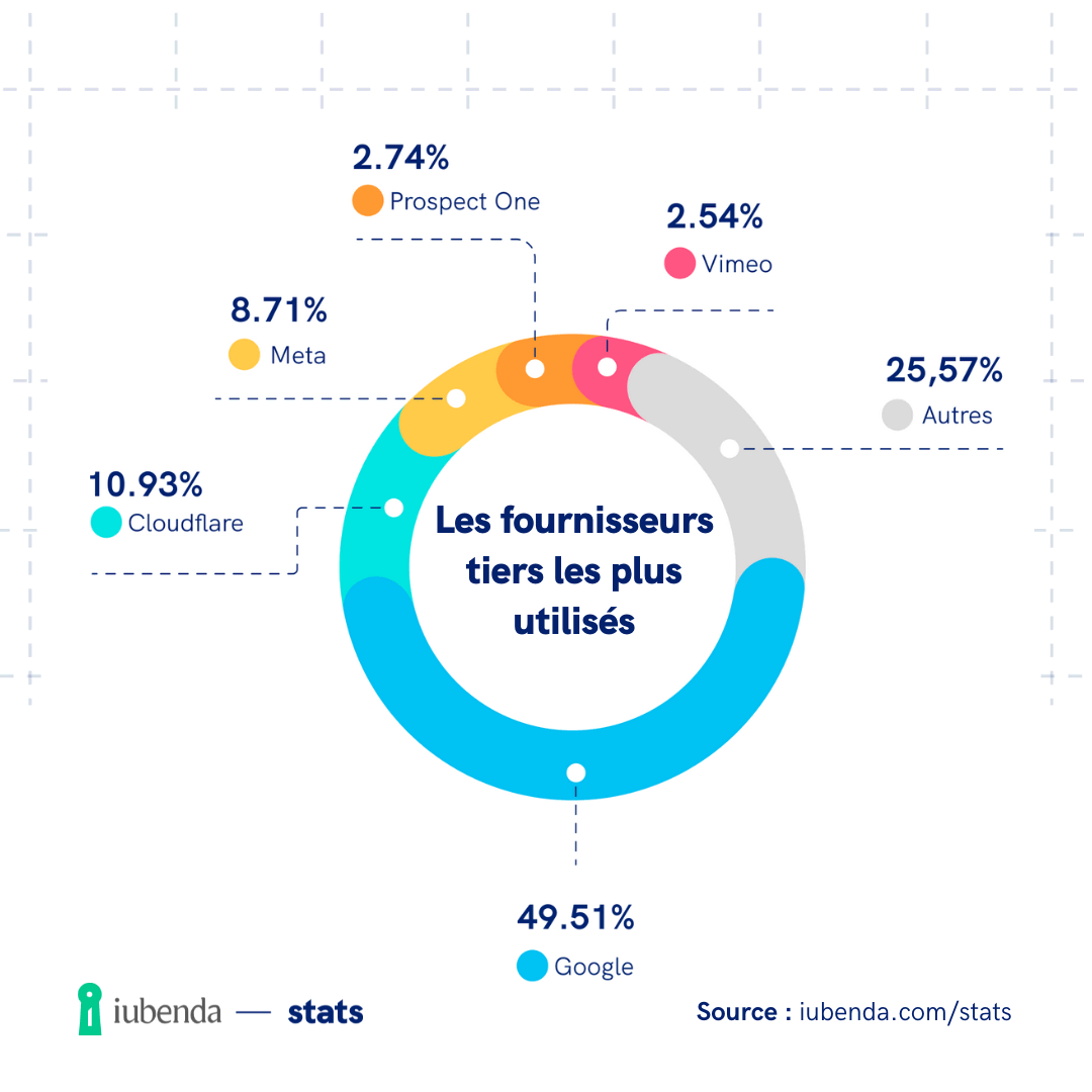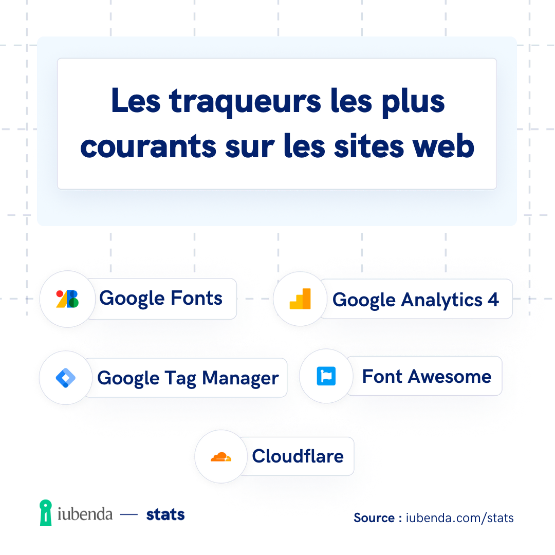 💡 Un site web utilise en moyenne trois autres traqueurs de première partie.Votre site en fait-il partie ? Si c’est le cas, vous devrez en informer vos utilisateurs, conformément aux lois internationales sur la protection de la vie privée. La conformité aux réglementations est essentielle pour protéger la confiance des utilisateurs et éviter les sanctions.