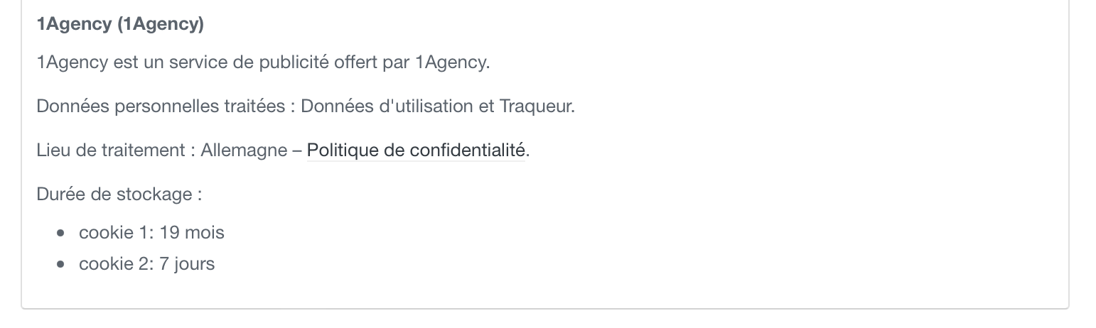 Le résultat ? Votre politique de cookies iubenda indiquera la durée de vie des différents cookies liés au service.