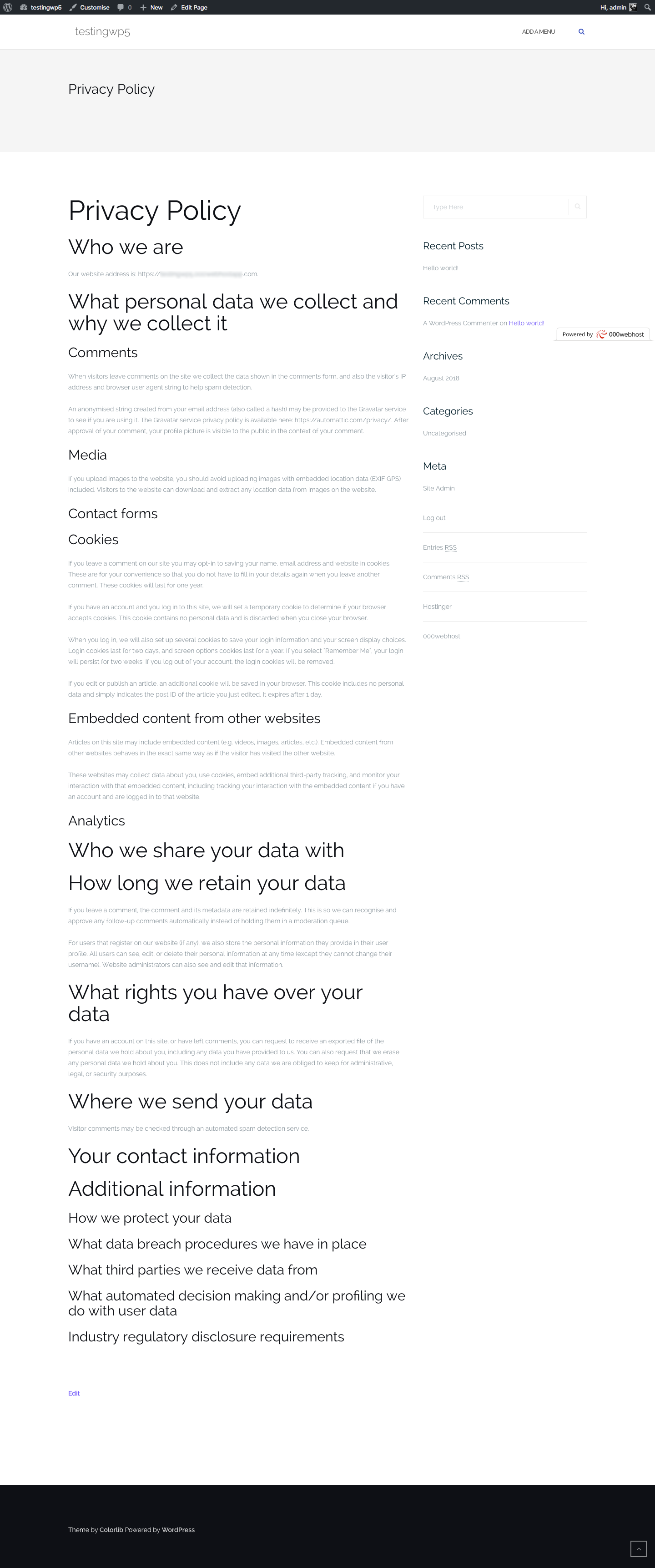 Please edit your privacy policy content, making sure to delete the summaries, and adding any information from your theme and plugins. . . It is your responsibility to write a comprehensive privacy policy, to make sure it reflects all national and international legal requirements on privacy, and to keep your policy current and accurate.