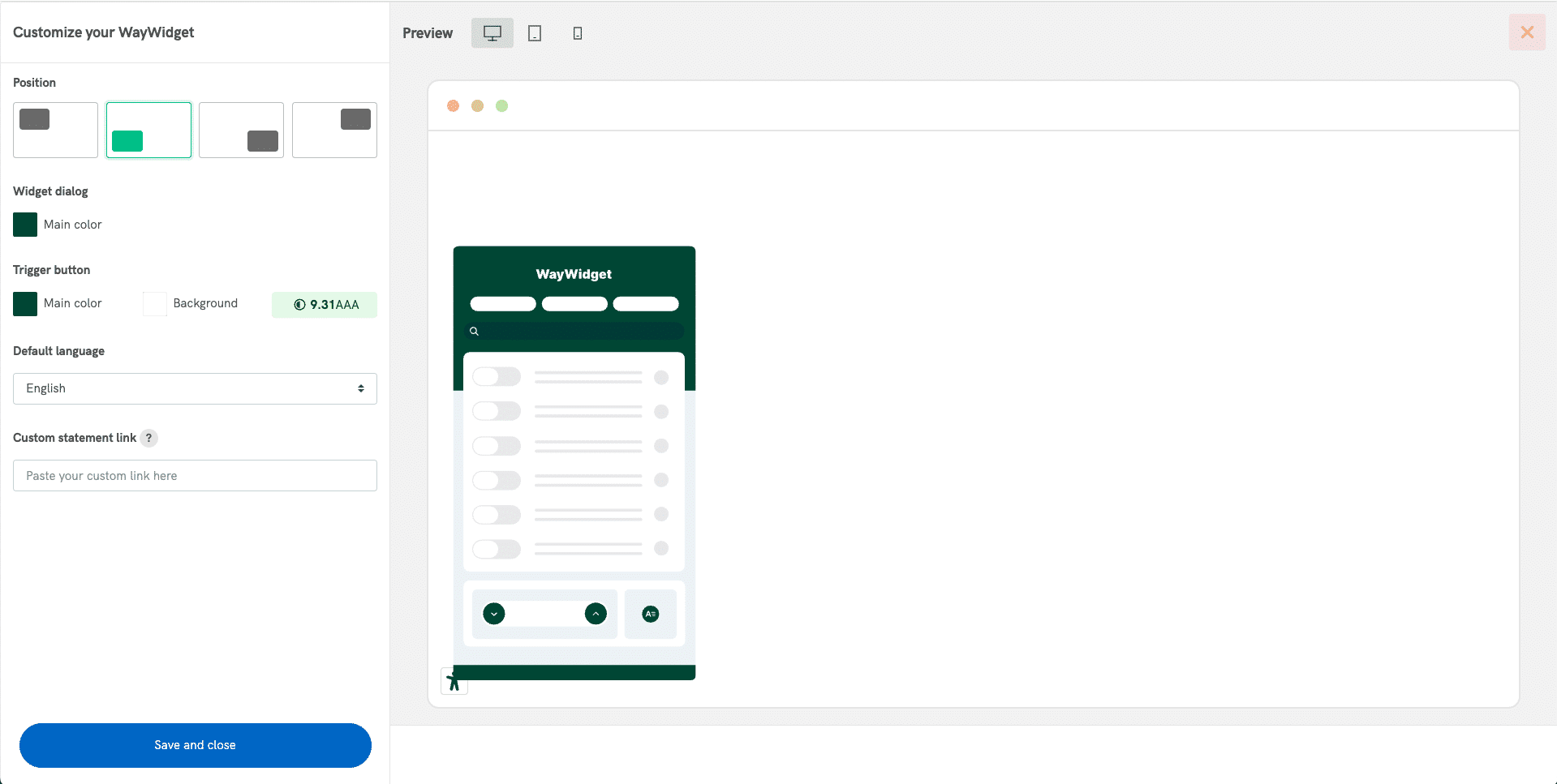 • Accessibility Statement URL: Add a custom link to your site’s accessibility statement, so users can easily find it.