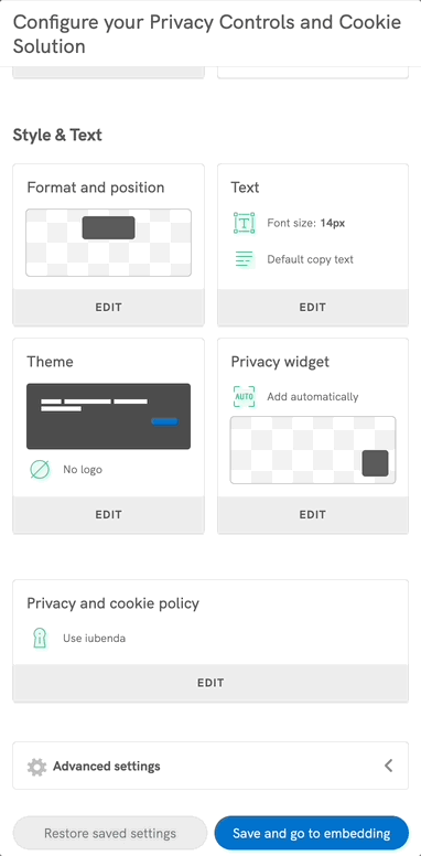 3. Under the Style & Text section, click Edit on the Privacy widget box, then simply choose whether you want to automatically add the widget or manually embed the link to the Notice at Collection.