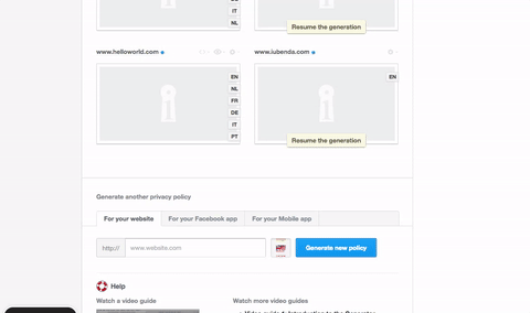 - Step 1 on iubenda: Generate your cookie policy link on iubenda