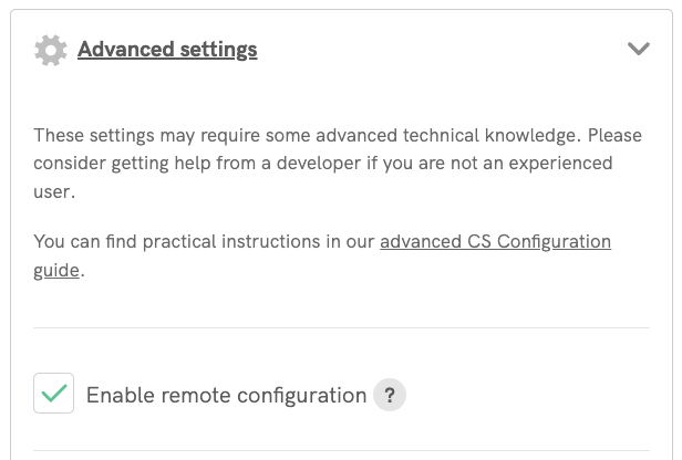 - Legacy users can enable full remote configuration by selecting the “Enable Remote Configuration” checkbox in the configurator.