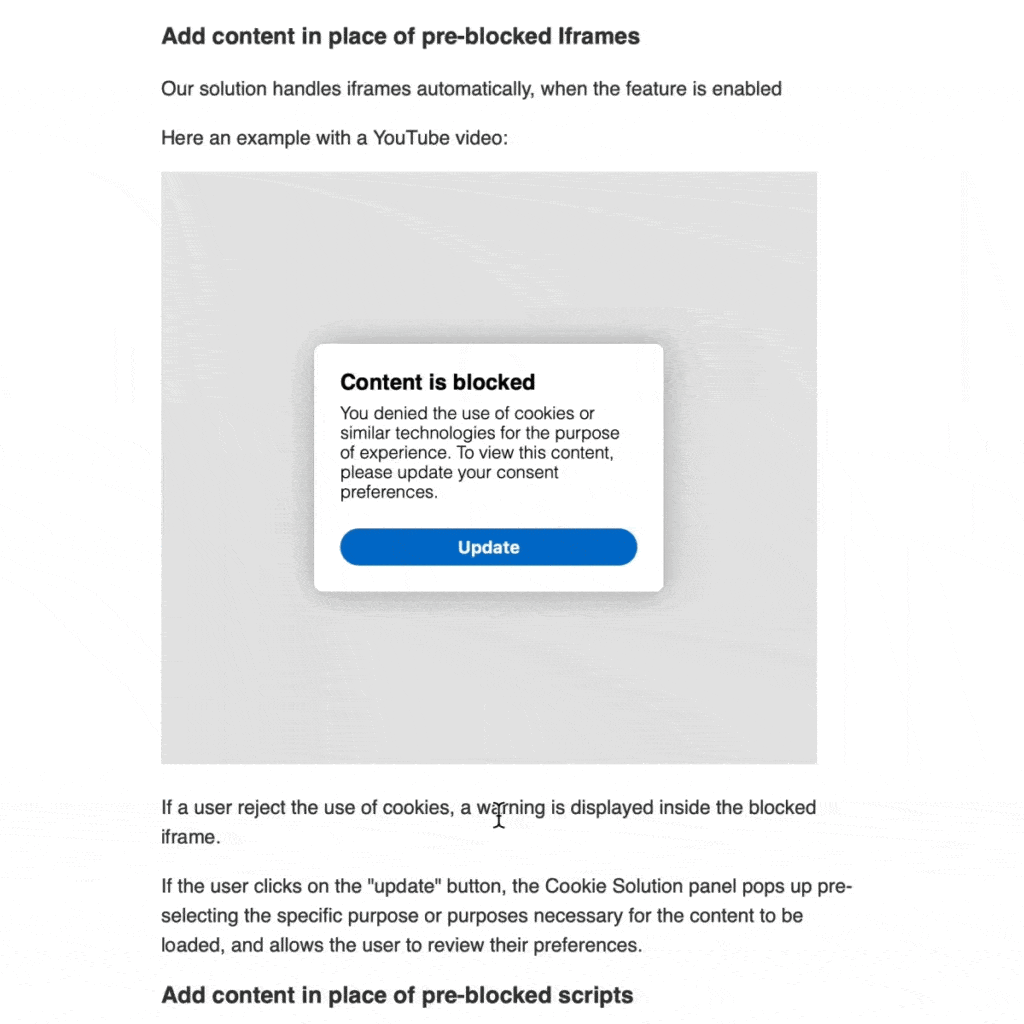 Le funzionalità di recupero dei rifiuti al consenso entrano in gioco quando gli utenti rifiutano o bloccano gli script in un sito o in un’app. Anziché mostrare elementi mancanti o non funzionanti correttamente, queste funzionalità presentano informative chiare e ottimali, offrendo agli utenti la possibilità di riconsiderare le proprie scelte. L’obiettivo principale è di garantire un percorso utente fluido mantenendo canali di comunicazione aperti, anche in presenza di blocchi di contenuti.