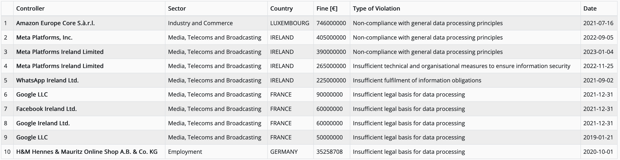 Top 10 multe GDPR per importo