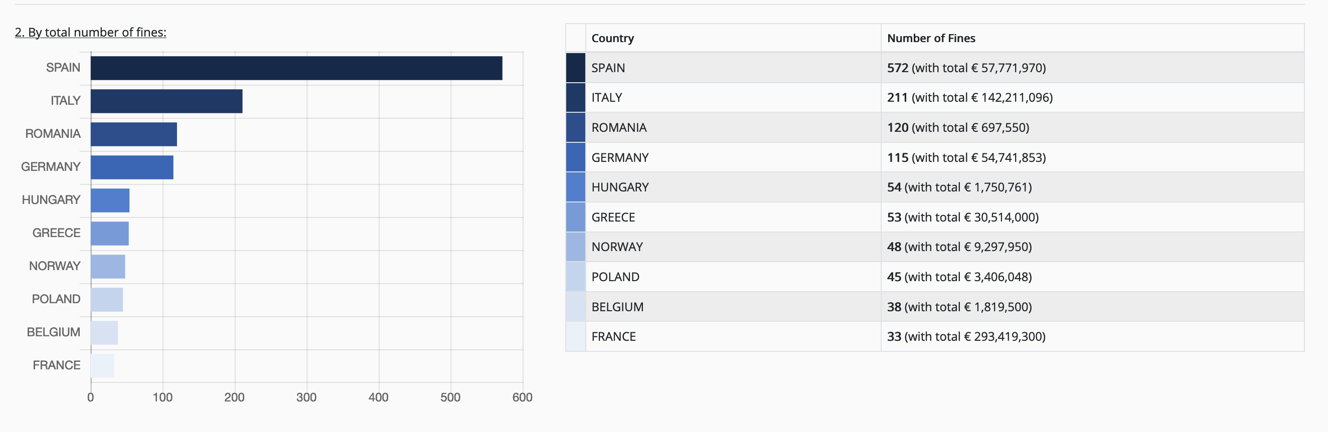 Ecco i primi 10 paesi UE con il maggior numero di multe GDPR emesse finora: