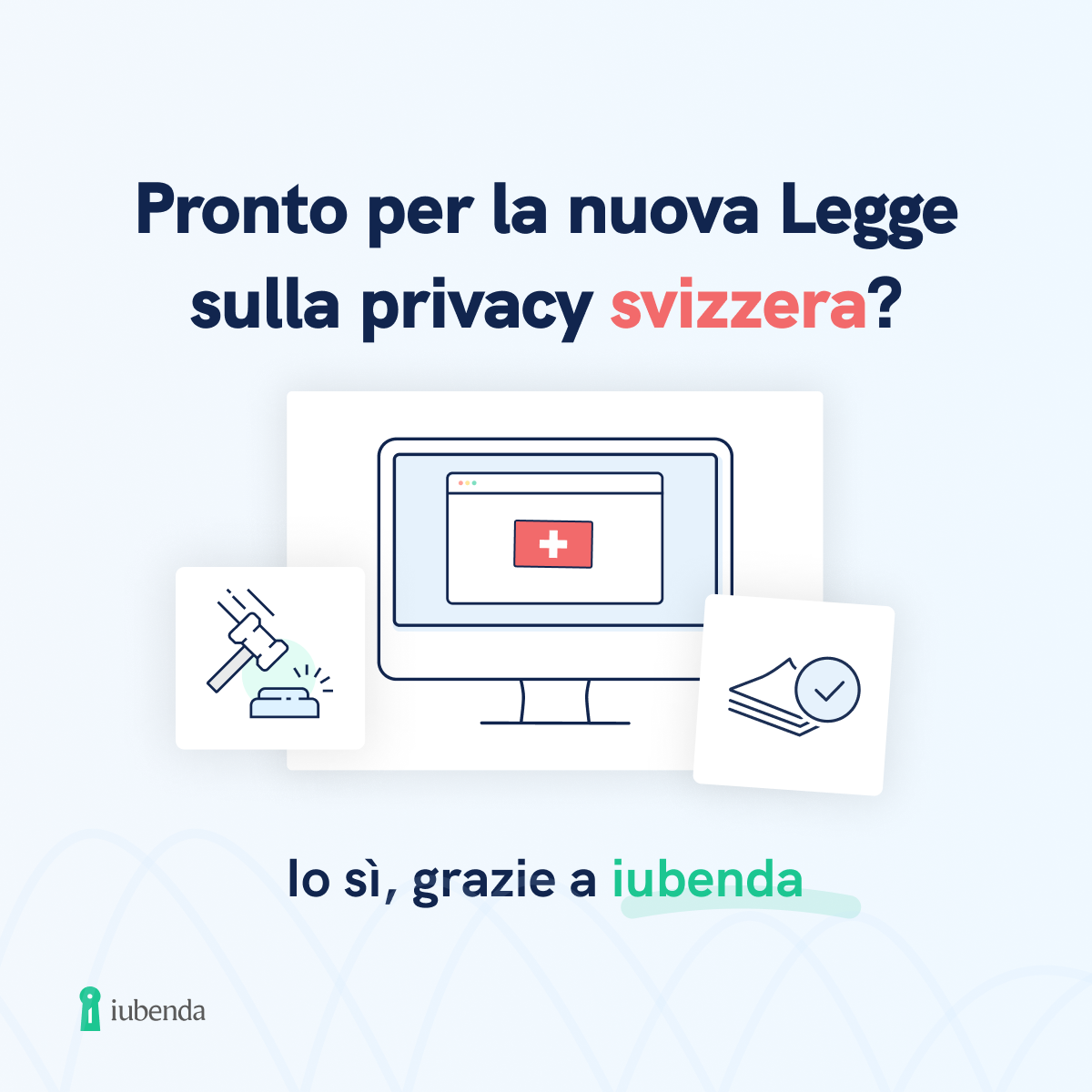 🇨🇭La Svizzera ha aggiornato la sua legge sulla privacy, e iubenda mi ha aiutato ad adeguarmi in un solo click. Tu stai già rispettando i nuovi requisiti? Fai click sul mio link di affiliazione [aggiungi qui il tuo link d’affiliazione] e ottieni uno sconto del 10%.